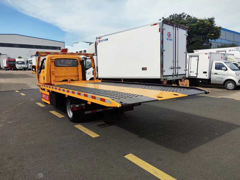 上裝配置:2噸上裝,4噸卷揚,20米鋼絲繩,有三種板面可選,一體板3.8+1.3=5.1米左右,液壓翻轉板4.1+1=5.1米左右,液壓伸縮板4.2+1.2=5.4米左右,寬2.3米,雙側聯動操作,配警燈喊話器一套.輔助小車一套,四根捆綁帶,底盤合格證,整車合格證,保修手冊。(注意:藍牌清障車超重,上戶需要拆除,尾板,油缸,警燈,安裝后防護.)